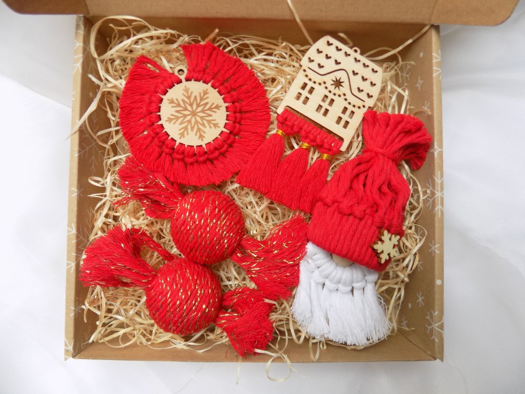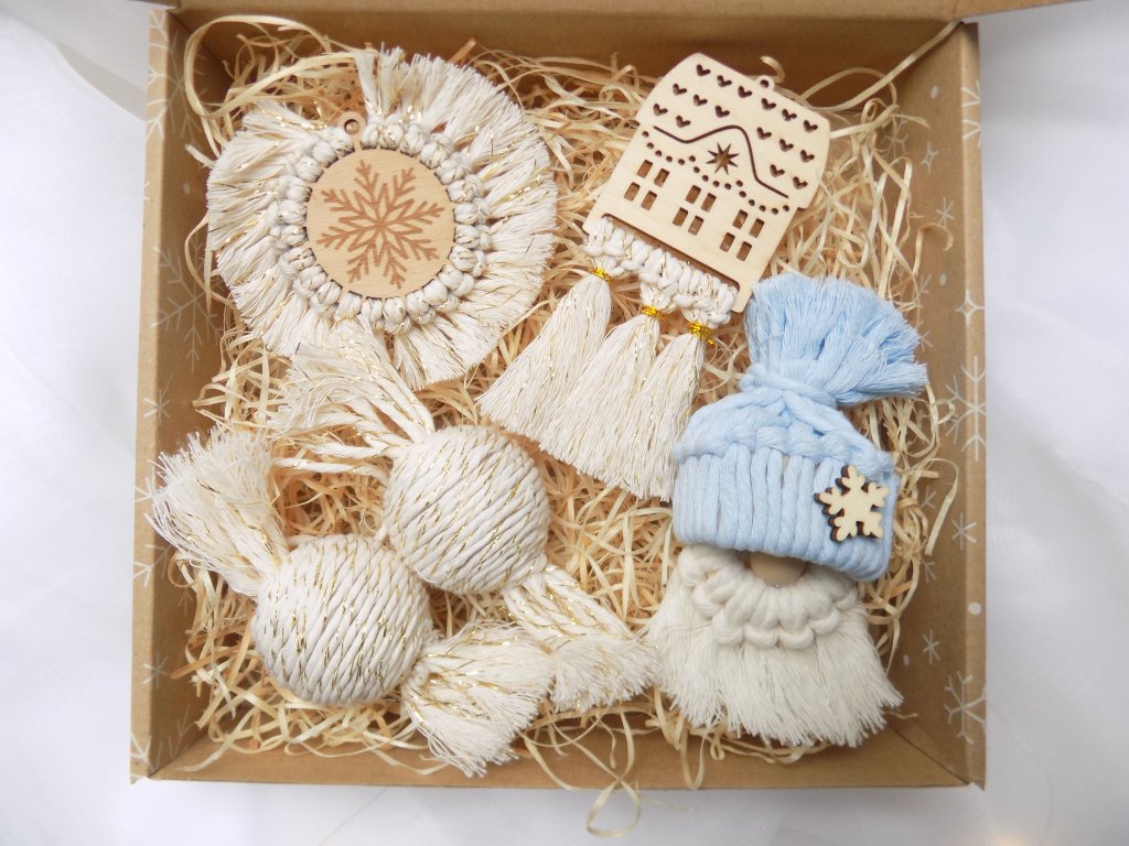 Ručně vyrobená sada čtyř macramé ozdob, které vnesou do domova kouzlo Vánoc a pohodu zimních večerů.