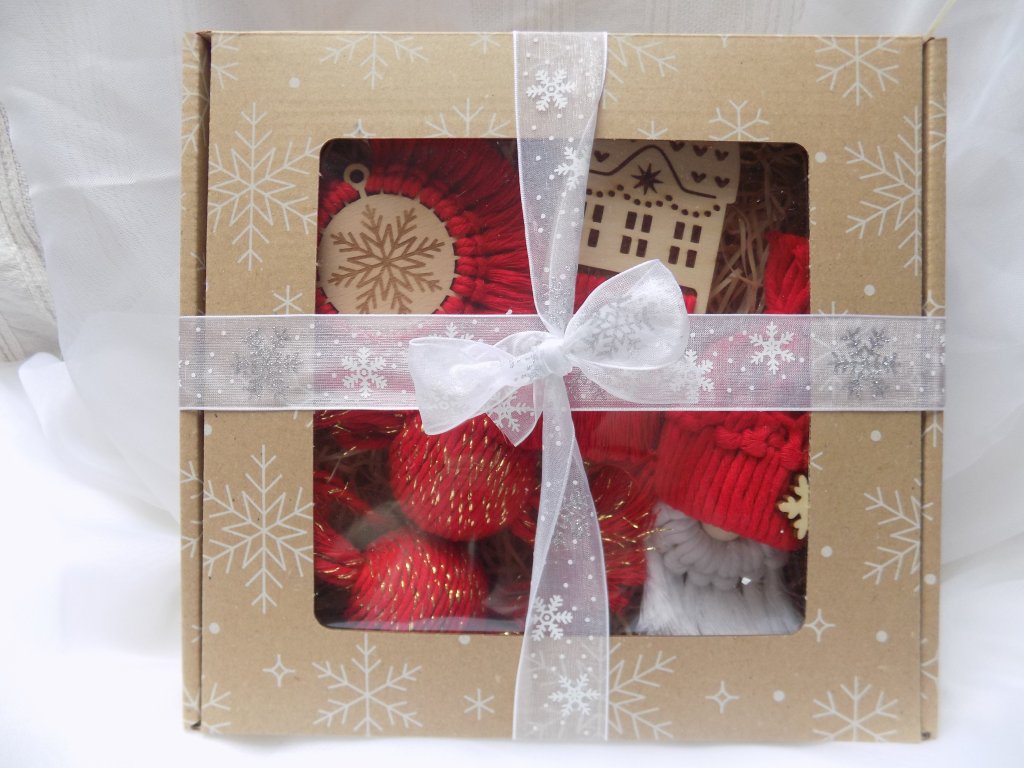 Vše je pečlivě zabalené v dárkové krabičce s okénkem a vánoční mašlí – připravené potěšit.